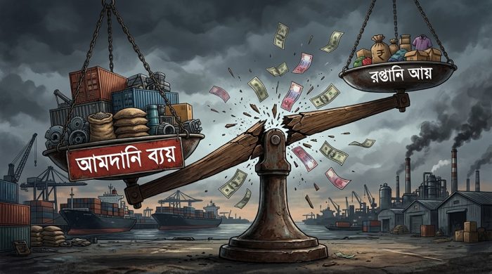 রপ্তানি আয়ের তুলনায় আমদানি ব্যয়ের লাগামহীন বৃদ্ধি এবং বিশ্ববাজারে জ্বালানিসহ নিত্যপণ্যের অব্যাহত ঊর্ধ্বগতিতে দেশের বৈদেশিক বাণিজ্যে বড় ধরনের ভারসাম্যহীনতা তৈরি হয়েছে। চলতি অর্থবছরের (২০২৫-২৬) প্রথম আট মাসেই (জুলাই-ফেব্রুয়ারি) পণ্য বাণিজ্যে