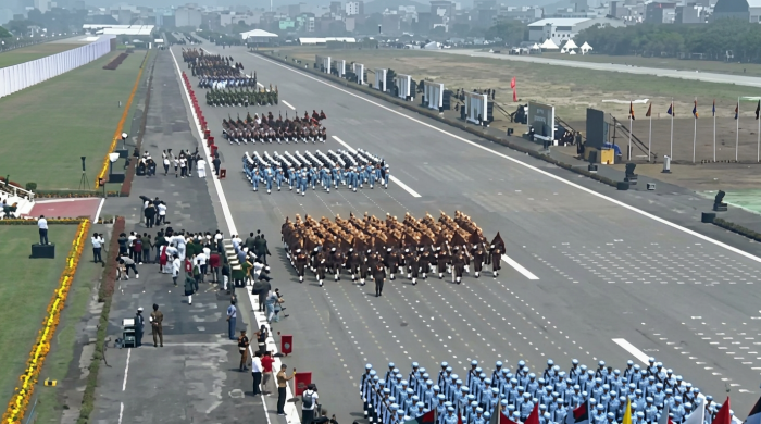 দীর্ঘ দেড় যুগ পর মহান স্বাধীনতা দিবসে রাজধানীর জাতীয় প্যারেড ময়দানে অত্যন্ত জাঁকজমকপূর্ণভাবে অনুষ্ঠিত হয়েছে সম্মিলিত বাহিনীর বর্ণাঢ্য কুচকাওয়াজ ও ফ্লাইপাস্ট। বৃহস্পতিবার (২৬ মার্চ) সকালে আয়োজিত এই মনোমুগ্ধকর অনুষ্ঠানে অভিবাদন
