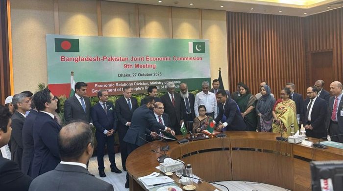 দীর্ঘ ২০ বছর পর অনুষ্ঠিত হলো বাংলাদেশ-পাকিস্তান যৌথ অর্থনৈতিক কমিশনের বৈঠক। সোমবার (২৭ অক্টোবর) রাজধানীর শেরেবাংলা নগরের এনইসি সম্মেলন কক্ষে এ বৈঠক অনুষ্ঠিত হয়। এতে বাংলাদেশ প্রতিনিধি দলের নেতৃত্ব দেন
