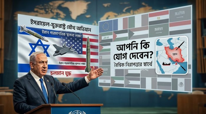 যুক্তরাষ্ট্রের সাথে মিলে ইরানের বিরুদ্ধে যে যুদ্ধ চলছে, তাতে অন্যান্য দেশগুলোকেও সরাসরি অংশ নেওয়ার আহ্বান জানিয়েছেন ইসরায়েলের প্রধানমন্ত্রী বেঞ্জামিন নেতানিয়াহু। তিনি দাবি করেছেন, ইরান শুধু নির্দিষ্ট কোনো দেশের জন্য নয়,