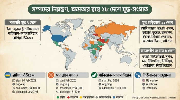 বিশ্বজুড়ে সম্পদের নিয়ন্ত্রণ এবং ক্ষমতার আধিপত্য বিস্তারকে কেন্দ্র করে চরম অস্থিতিশীলতা বিরাজ করছে। ক্রাইসিস গ্রুপ, আলজাজিরা, দ্য গার্ডিয়ান এবং লা মঁদ-এর মতো আন্তর্জাতিক সংস্থা ও সংবাদমাধ্যমের তথ্য বিশ্লেষণে দেখা গেছে,